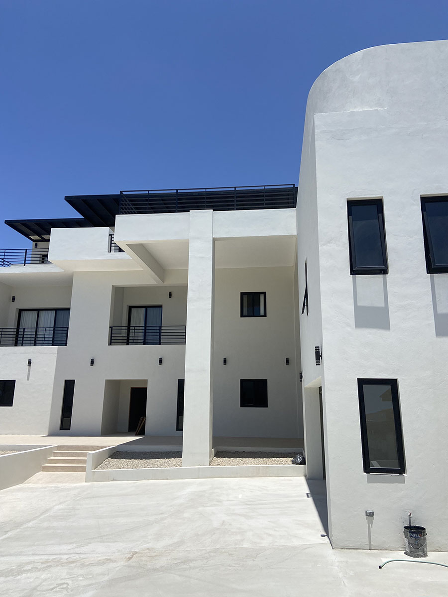 The beauty of Club Campestre lies in its natural setting, and a great builder understands that every home should harmonize with its surroundings. The desert landscape, dotted with cactus and blooming agave, creates a striking contrast to the deep blue sea. The architecture here does not fight the terrain it flows with it.